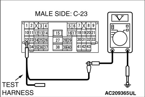 (1)Disconnect intermediate connector C-24 and TCL/ASC-ECU connector A-38, and measure the voltage at the male side of intermediate connector C-24 (at front wiring harness side).