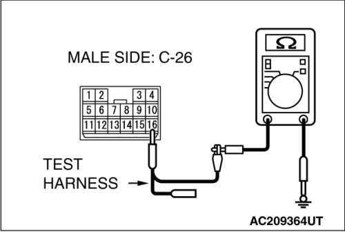 (1)Disconnect intermediate connector C-26, and measure the resistance at the male side (at floor wiring harness side).
