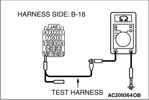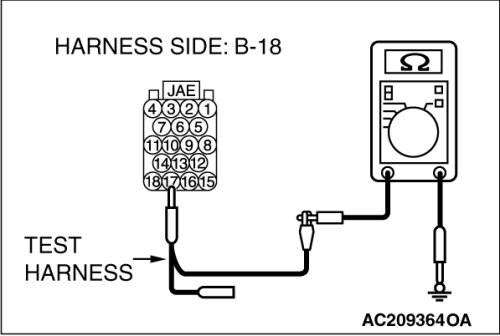 (2)Disconnect ECM [M/T] or PCM [A/T] connector B-18 and TCL/ASC-ECU connector A-38, and measure the resistance at the harness side of ECM [M/T] or PCM [A/T] connector B-18.