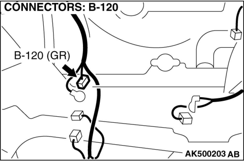 STEP 2. Check harness connector B-22 at ECM [M/T] or PCM [A/T] connector and harness connector B-120 at generator connector for damage.
