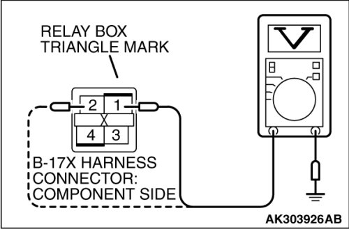 STEP 3. Measure the power supply voltage at MFI relay harness side connector B-16X.