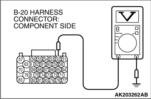 STEP 9. Measure the power supply voltage at ECM [M/T] or PCM [A/T] harness side connector B-20.