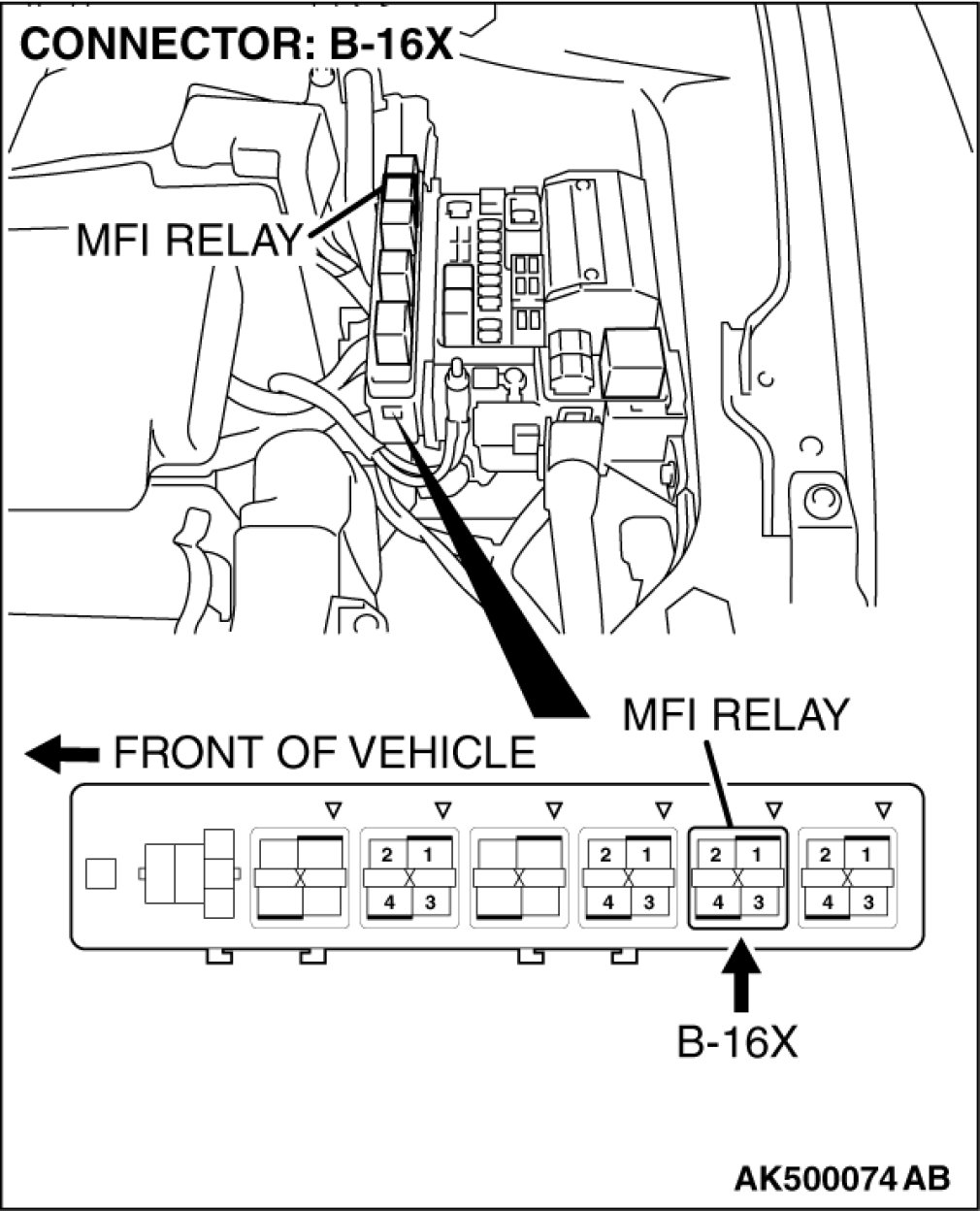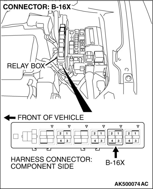 STEP 1. Check harness connector B-16X at MFI relay for damage.