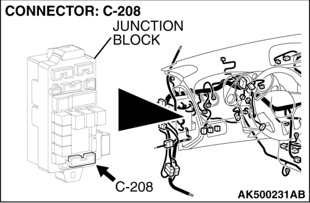 Check harness after checking intermediate connector C-208. If intermediate connector is damaged, repair or replace it. After to Harness Connector Inspection Harness Connector Inspection. Then check that the malfunction is eliminated.
