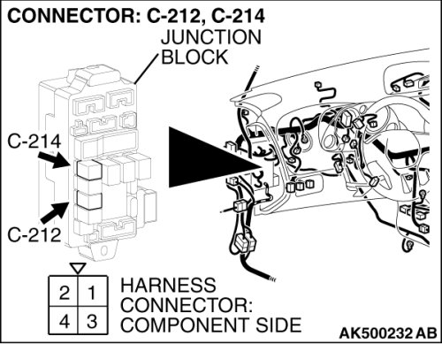 (1)Disconnect the connector C-214 and measure at the harness side.