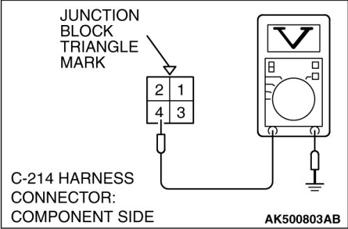 Disconnect the connector C-214 and measure at the harness side.