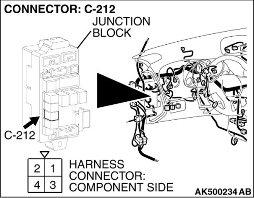 (1)Disconnect the connector C-212 and measure at the harness side.