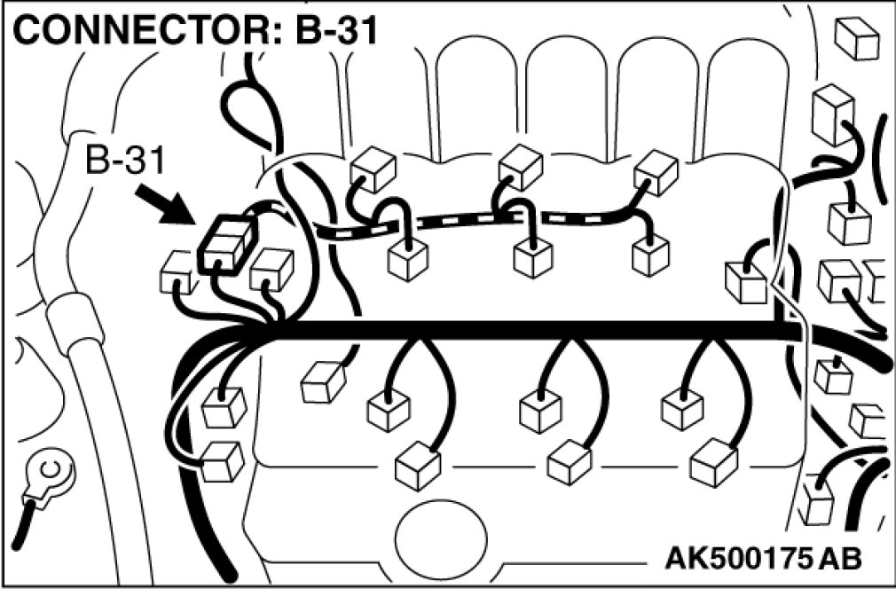 Check harness after checking intermediate connector B-31. If intermediate connector is damaged, repair or replace it.