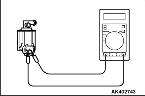 5. Measure the resistance between the terminals of the EVAP purge solenoid.