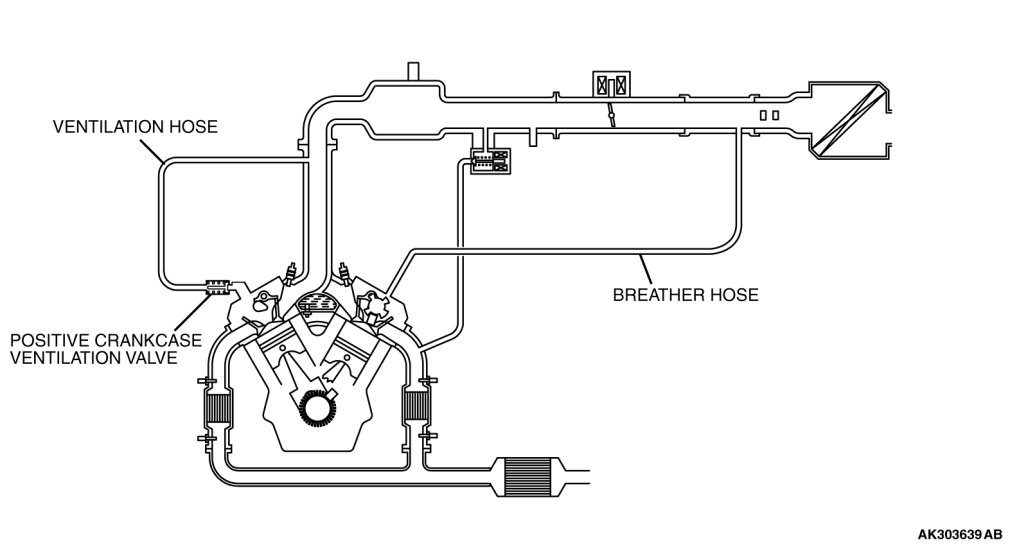 The positive crankcase ventilation (PCV) system prevents the escape of blow-by gases from inside the crankcase into the atmosphere.