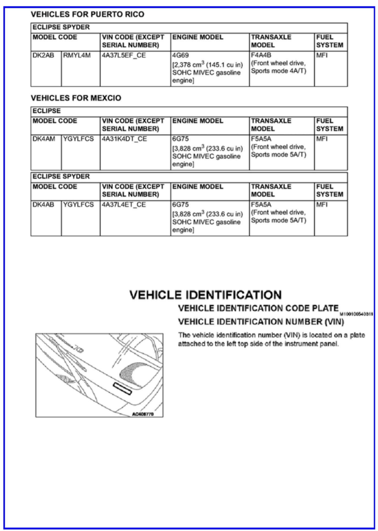2011 Eclipse/Eclipse Spyder pages 00-18 through 00-21, 00-41 through 00-46, 23A-70, 35C-125 through 35C-137, 35C-234, 51-9, 90-432 through 90-447