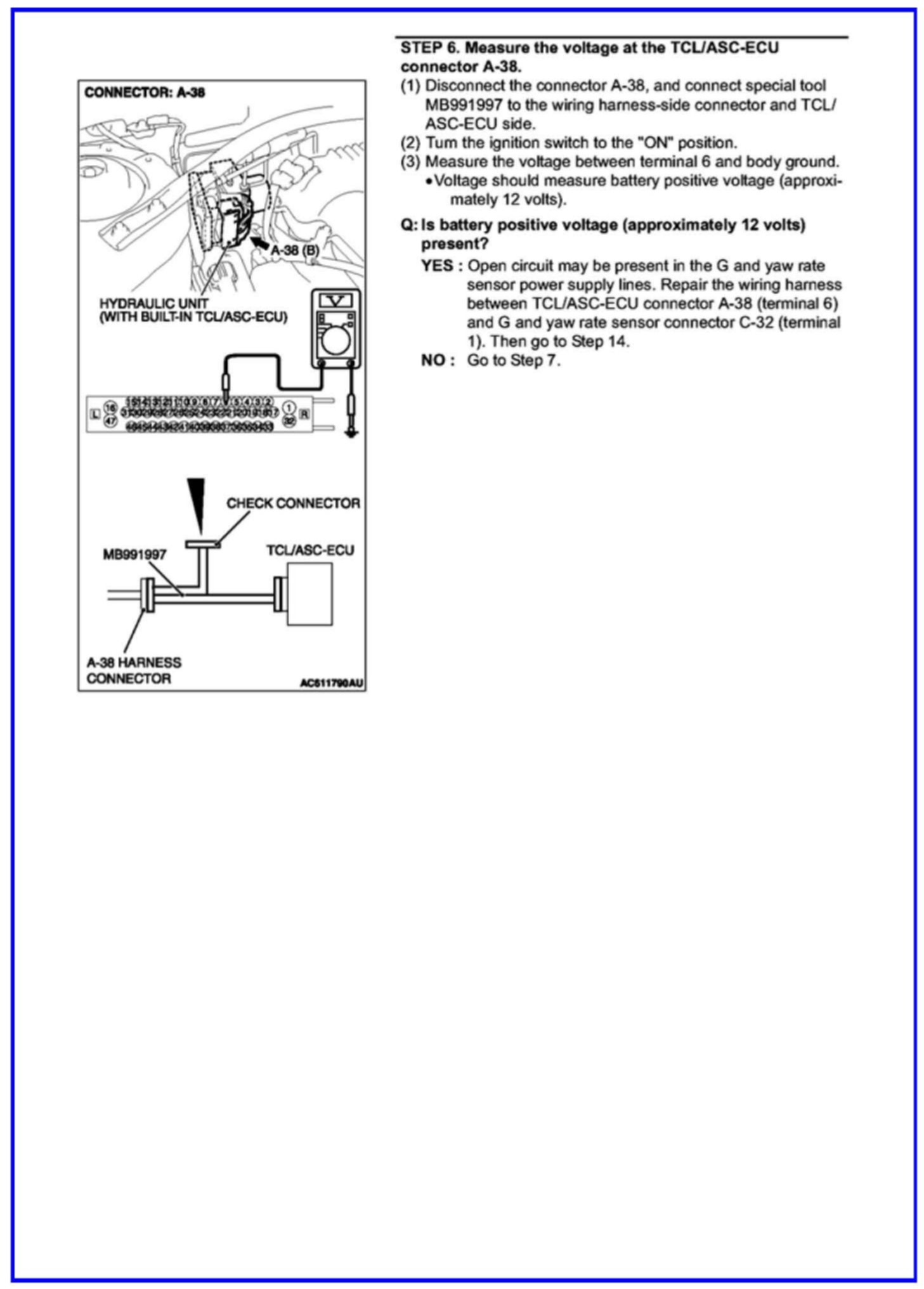 ^ Group 35C - Traction Control/Active Stability Control System: Changes to G and Yaw Rate Sensor connector number of pins reduced. Requires changes to diagnosis of DTCs C1366, C1371, C1377 and C1864.