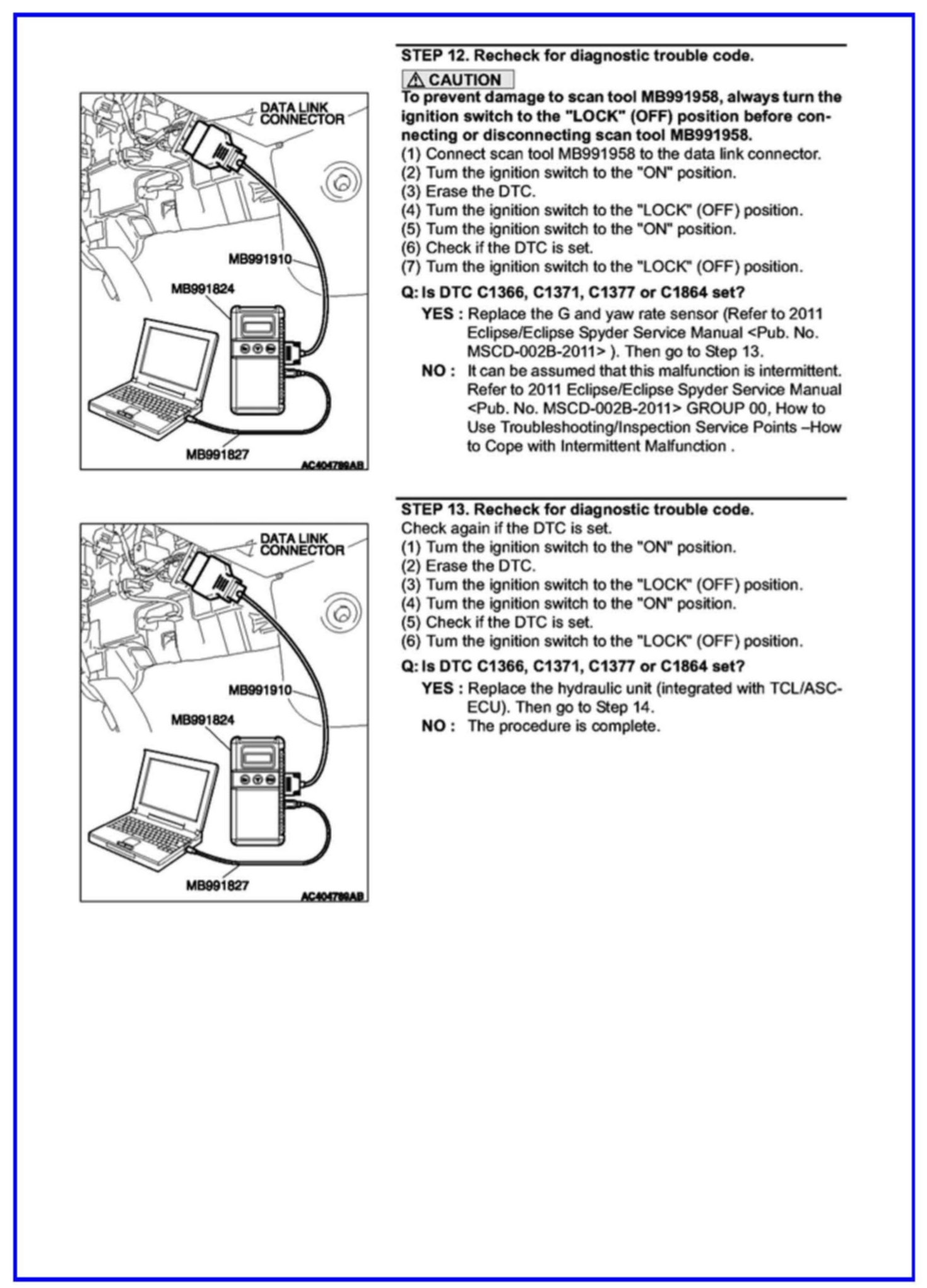 This TSB contains new service information specific to 2012 models and supplements the 2011 Eclipse/Eclipse Spyder Service Manual to provide complete repair information for 2012 models.