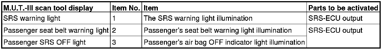 The scan tool activates the following actuators for testing.