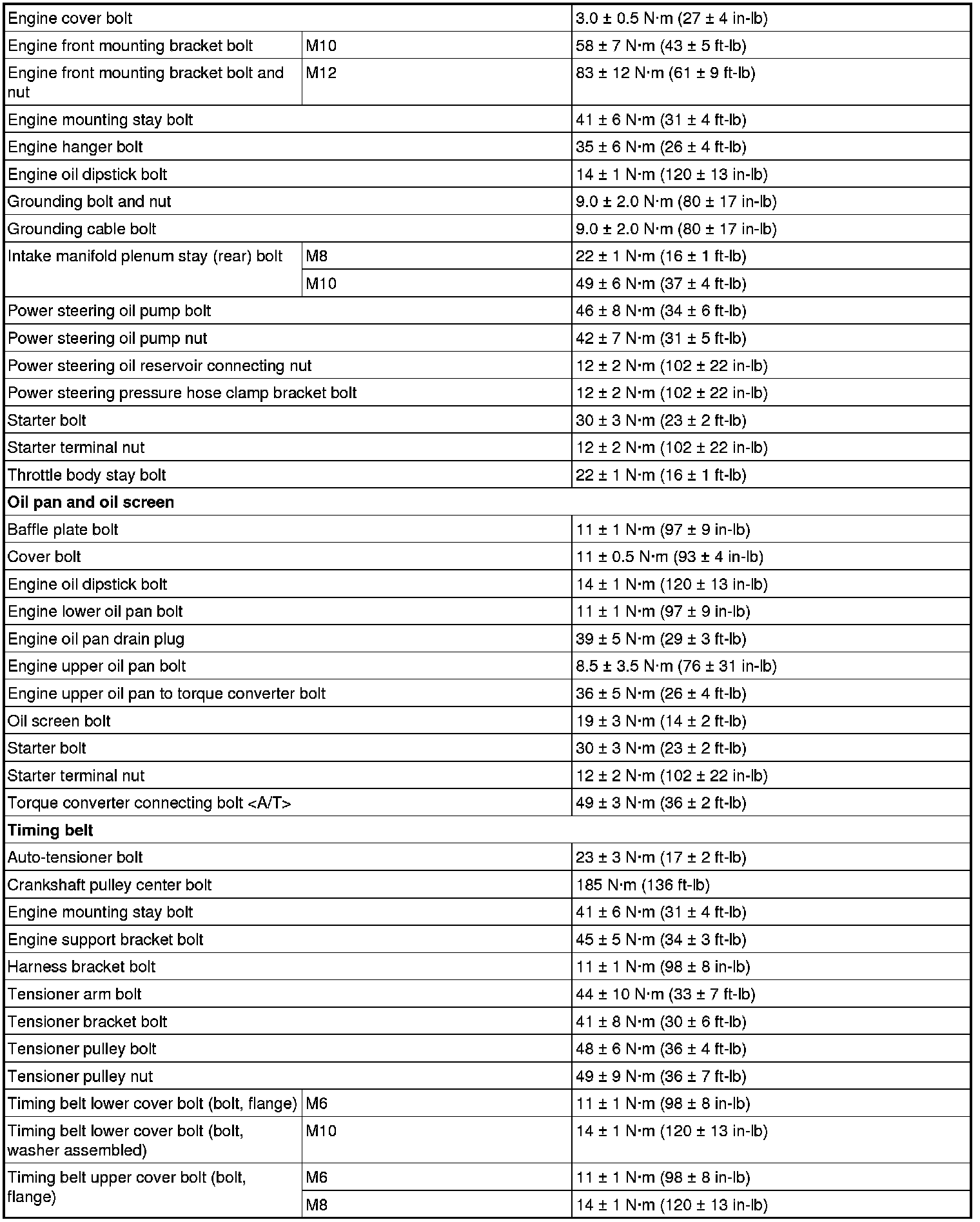 FASTENER TIGHTENING SPECIFICATIONS