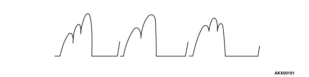 If the ripple height is abnormally high (approximately 2 V or more during idling), the wires between the generator "B" terminal and the battery have broken due to fuse blowing, etc. The generator is usually operating properly.