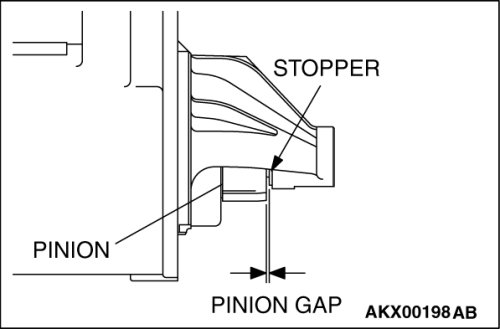 4. Check the pinion-to-stopper clearance (pinion gap) with a feeler gauge.