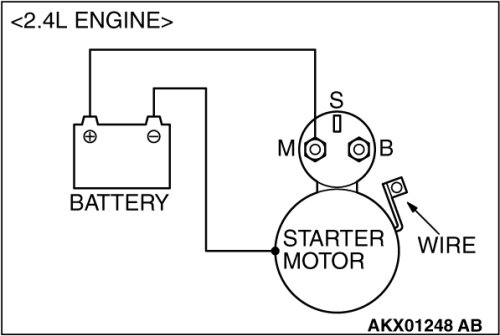 5. Connect the battery cable from the negative battery terminal to the starter motor body.