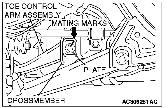 Place mating marks on the crossmember and the plate before removing the assist link bolt.