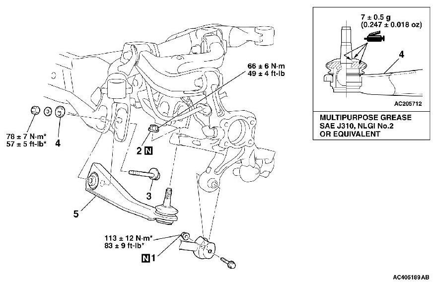 - Do not remove the nut from ball joint. Loosen it and use special tool MB991897 to avoid possible damage to ball joint threads.