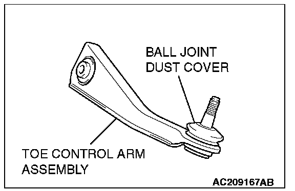 TOE CONTROL ARM BALL JOINT DUST COVER CHECK1. Check the toe control arm ball joint dust cover for cracks or damage by pushing it with your finger.