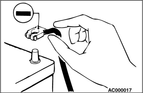 When checking or servicing does not require power from the vehicle battery, be sure to disconnect the cable from the battery (-) terminal. This will prevent problems that could be caused by a short circuit. Disconnect the (-) battery terminal first and reconnect it last.