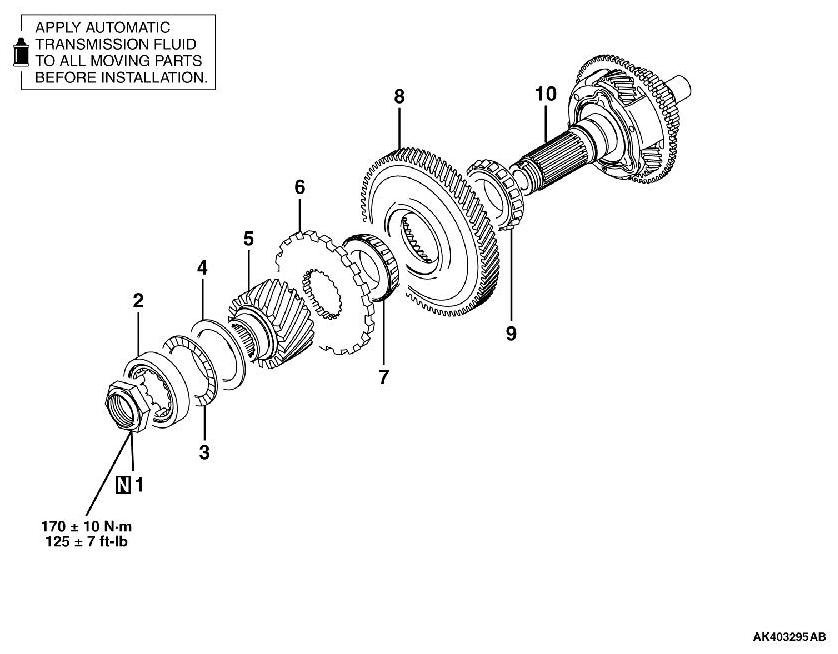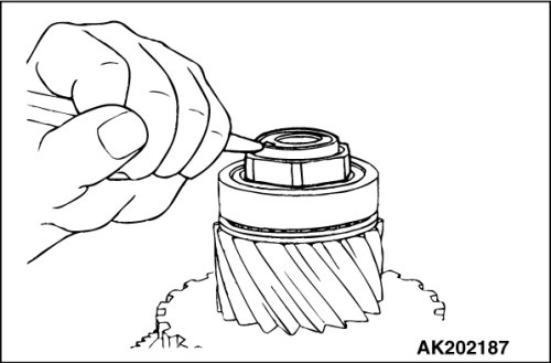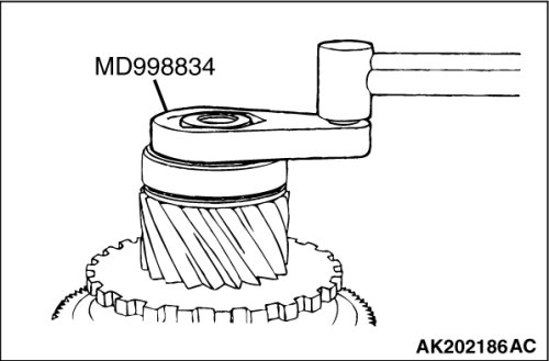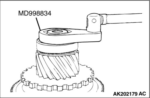 1. Apply ATF on a new locknut, and use special tool MD998834 to tighten the specified torque.
