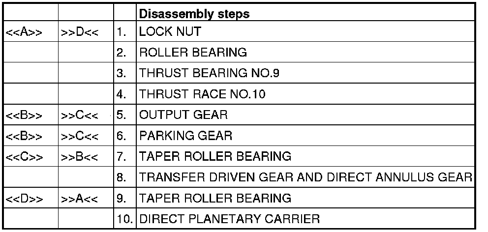 2. Push the shaft of the direct planetary carrier to remove the taper roller bearing and gear.