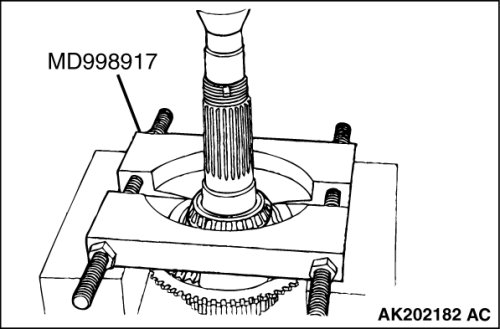 2. Using special tool MD998917 to remove the taper roller bearing.