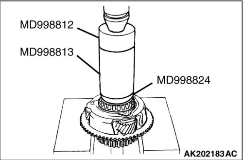 2. Using special tools MD998812, MD998813 and MD998824, press in the taper roller bearing.