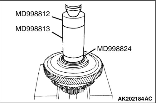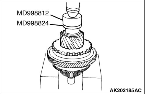 1. Using special tools MD998812 and MD998824, press in the parking gear.
