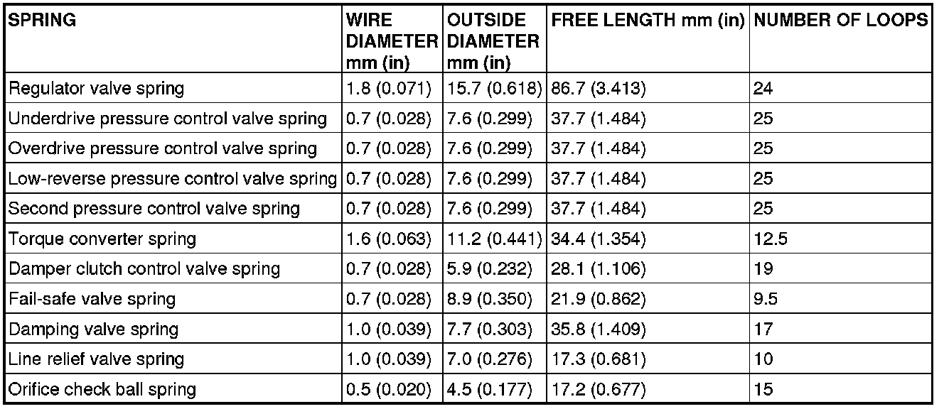 VALVE BODY SPRING IDENTIFICATION TABLE
