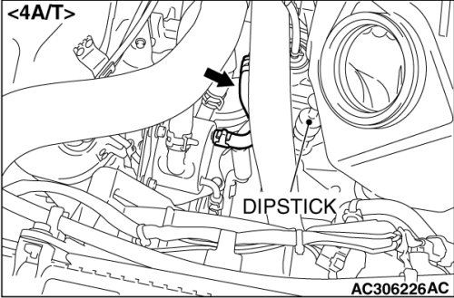 The transmission fluid temperature is measured with scan tool MB991958 (M.U.T.-III sub assembly).