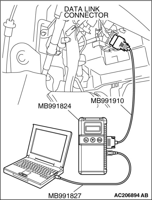 (1)Connect scan tool MB991958 to the data link connector.