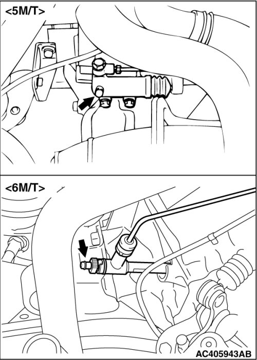 For bleeding, never "pump" the clutch pedal. This may cause an oil leak at the clutch cylinder.
