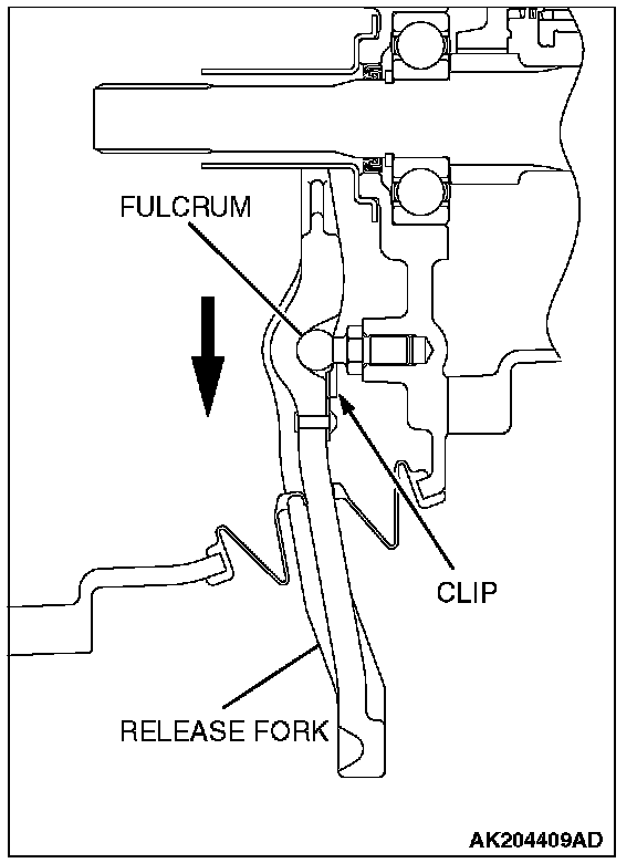 Move the release fork in the direction shown to remove the clip from the fulcrum.
