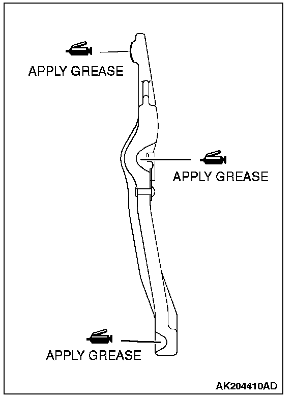 1. Apply Mitsubishi Part number 0101011 or equivalent to the illustrated positions of the release fork.