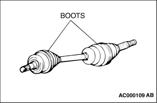 DRIVE SHAFT BOOTS (INSPECT FOR GREASE LEAKS AND DAMAGE)