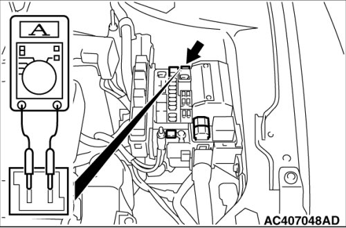 1. Remove the power window fuse and connect an ammeter as shown in the illustration.