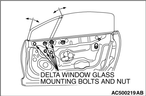(4) Tighten the delta window glass mounting bolts and nuts.