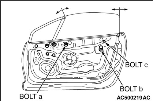 Temporarily tighten bolt a and bolt b with the door window glass fully closed.