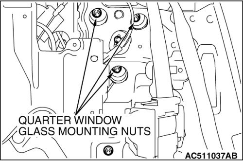 (1) Loosen the quarter window glass mounting nuts.