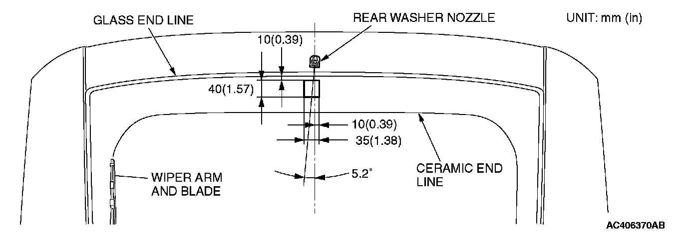 Move the nozzle to adjust the position so that washer fluid is sprayed in the area shown in the illustration.