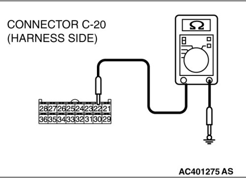 STEP 6. Measure the resistance at A/C-ECU connector C-20.