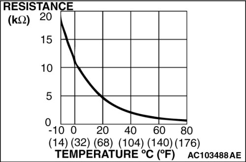 (2)When the resistance between the sensor terminals is measured under two or more temperature conditions, the resistance should approximately satisfy the illustrated values.