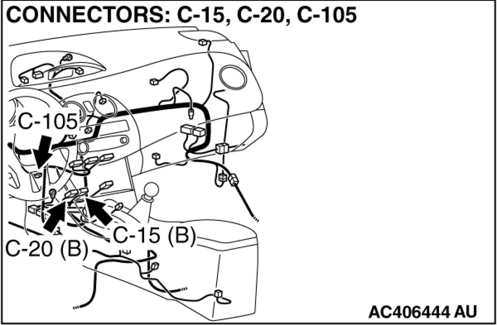 STEP 5. Check A/C-ECU connector C-15 and C-20 for loose, corroded or damaged terminals, or terminals pushed back in the connector.