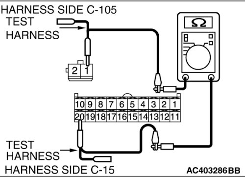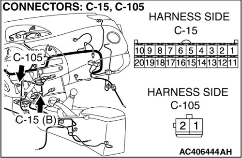 STEP 9. Check the wiring harness between A/C-ECU connector C-15 (terminal 20) and heater air intake duct sensor connector C-105 (terminal 1).