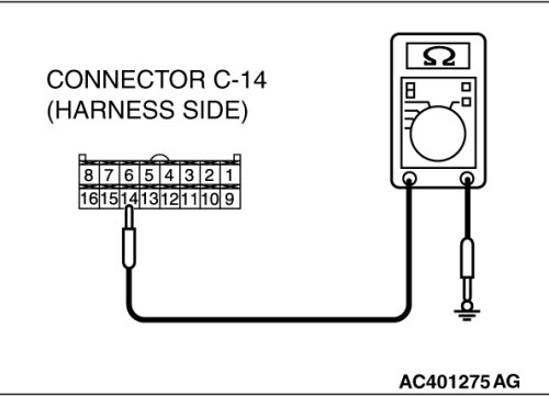STEP 6. Measure the resistance at A/C-ECU connector C-14.