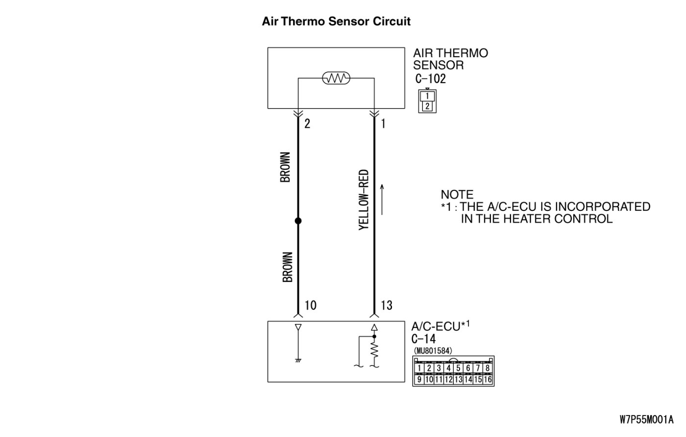The air thermo sensor sends the temperature information inside the heater unit to the A/C-ECU and controls the temperature of the air coming out of the vent.
