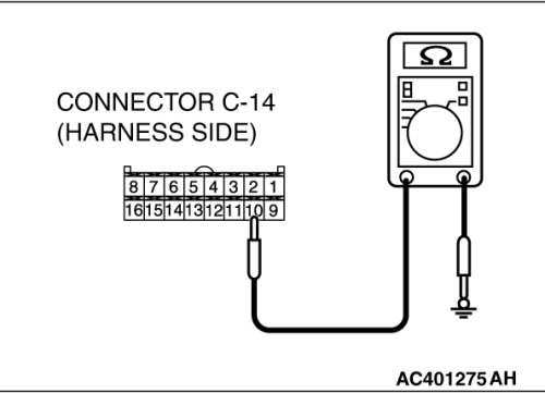 STEP 6. Measure the resistance at A/C-ECU connector C-14.